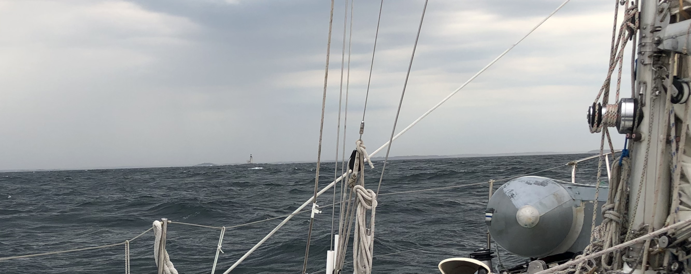 We decided to forego a stop at Bermuda. We don’t need any fuel, and a serious weather system has brought rough winds and seas from Bermuda northward. Even if we’d wanted to stop we would have struggled to get into Bermuda in the strong winds. Instead, we bided our time the past couple of days, intentionally slowing the boat to stay in less wind south of Bermuda and let the system go by. This morning in 20-24 knots of wind we set our course towards Maine. We anticipate a few days of robust SW winds for which we have swapped back to our smaller 100% jib.
