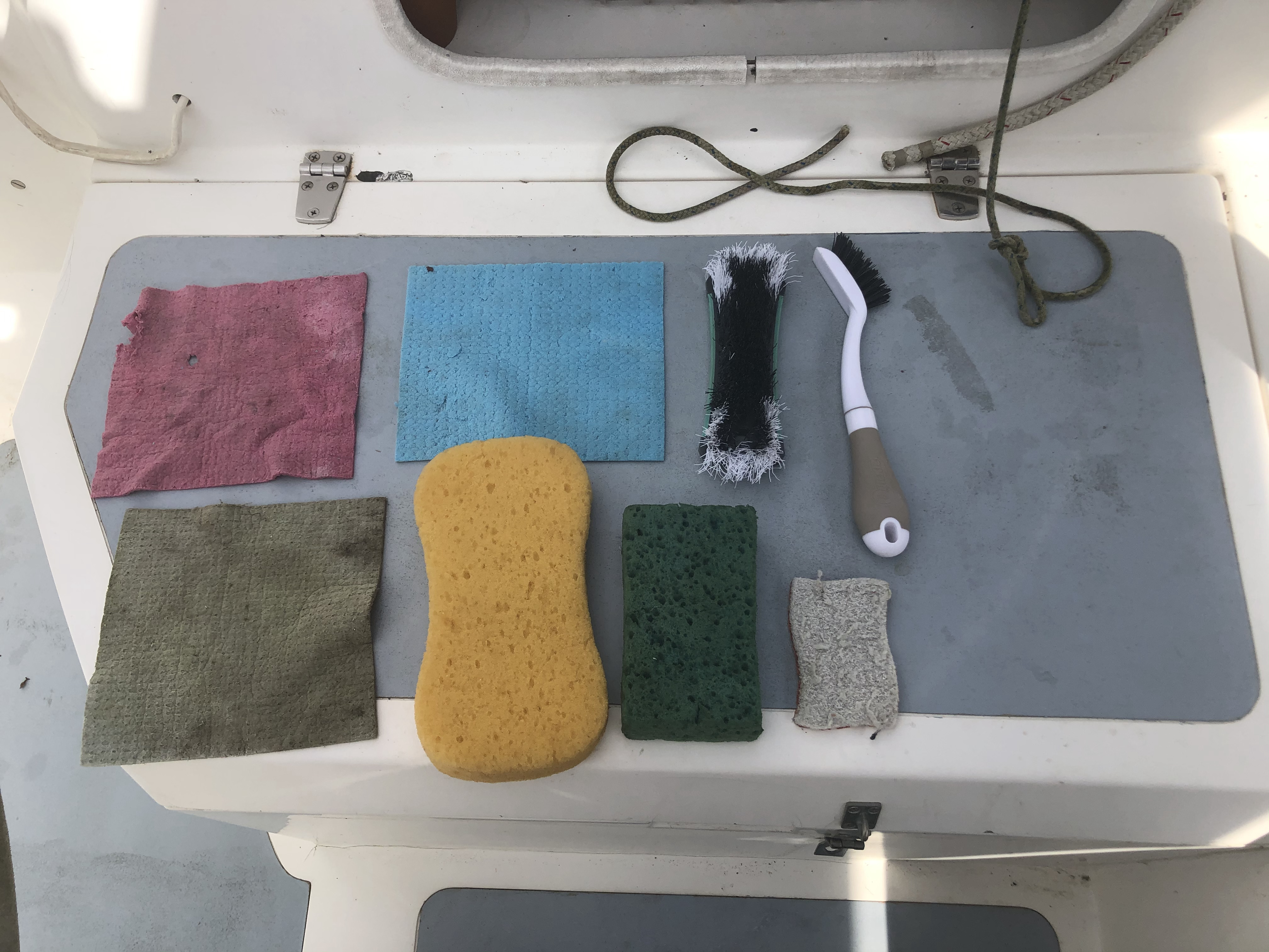 Now Wednesday morning has arrived and I’ve completed this Update. As I head up to the cockpit my 4:45am alarm-wakened-momma-bear grouchiness fades. I won’t allow myself to dwell on the partially wet, partially dry mountain of dirty clothes… the number of days I’ve lived in those same clothes… the issue of no fresh water pump working… and, how I’d trade a whole passel of Snickers for one crisp leaf of lettuce.
