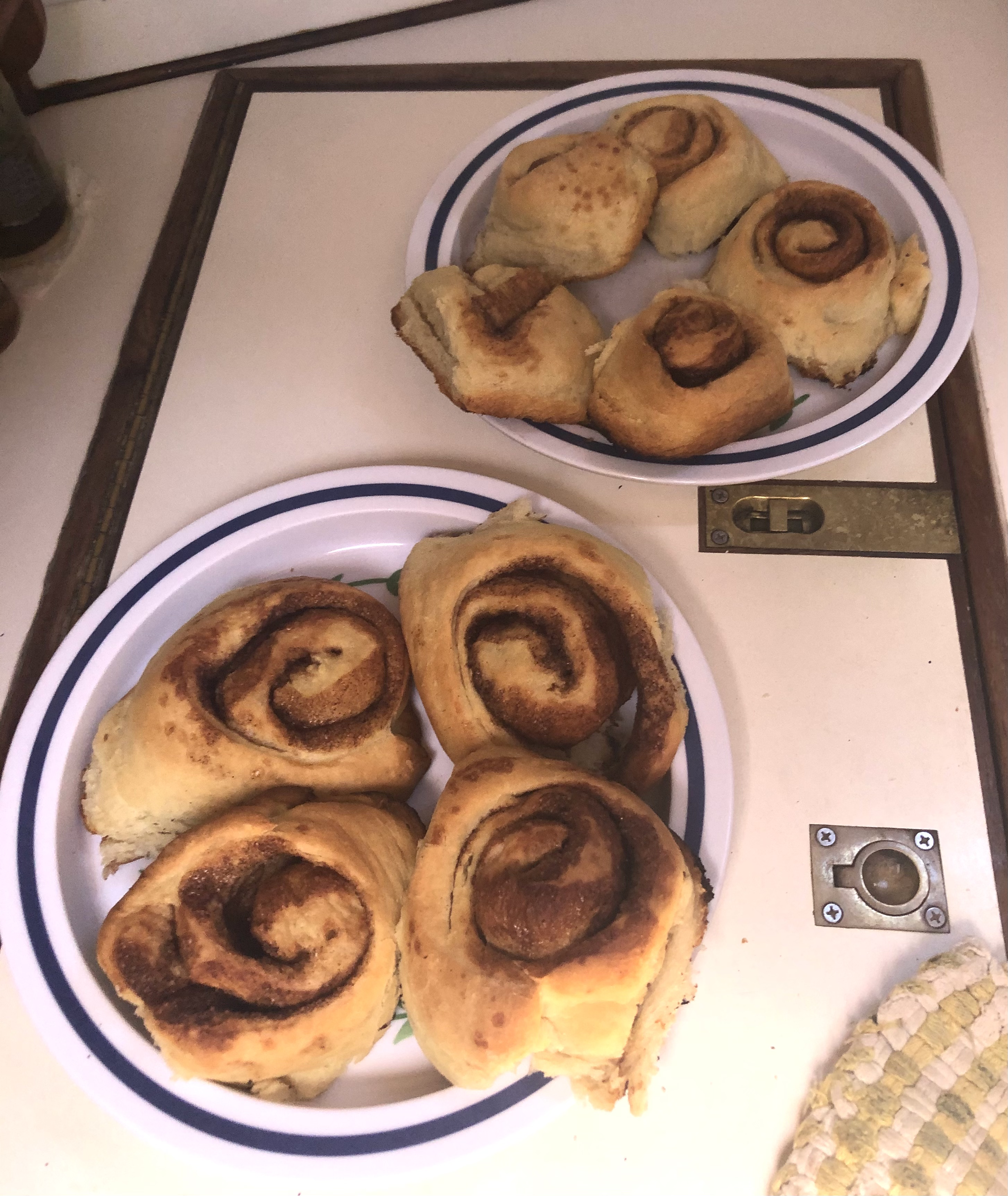 Luckily the smell of warm bread covers any missing ingredient (and taste) as the crew happily scarfed them down.