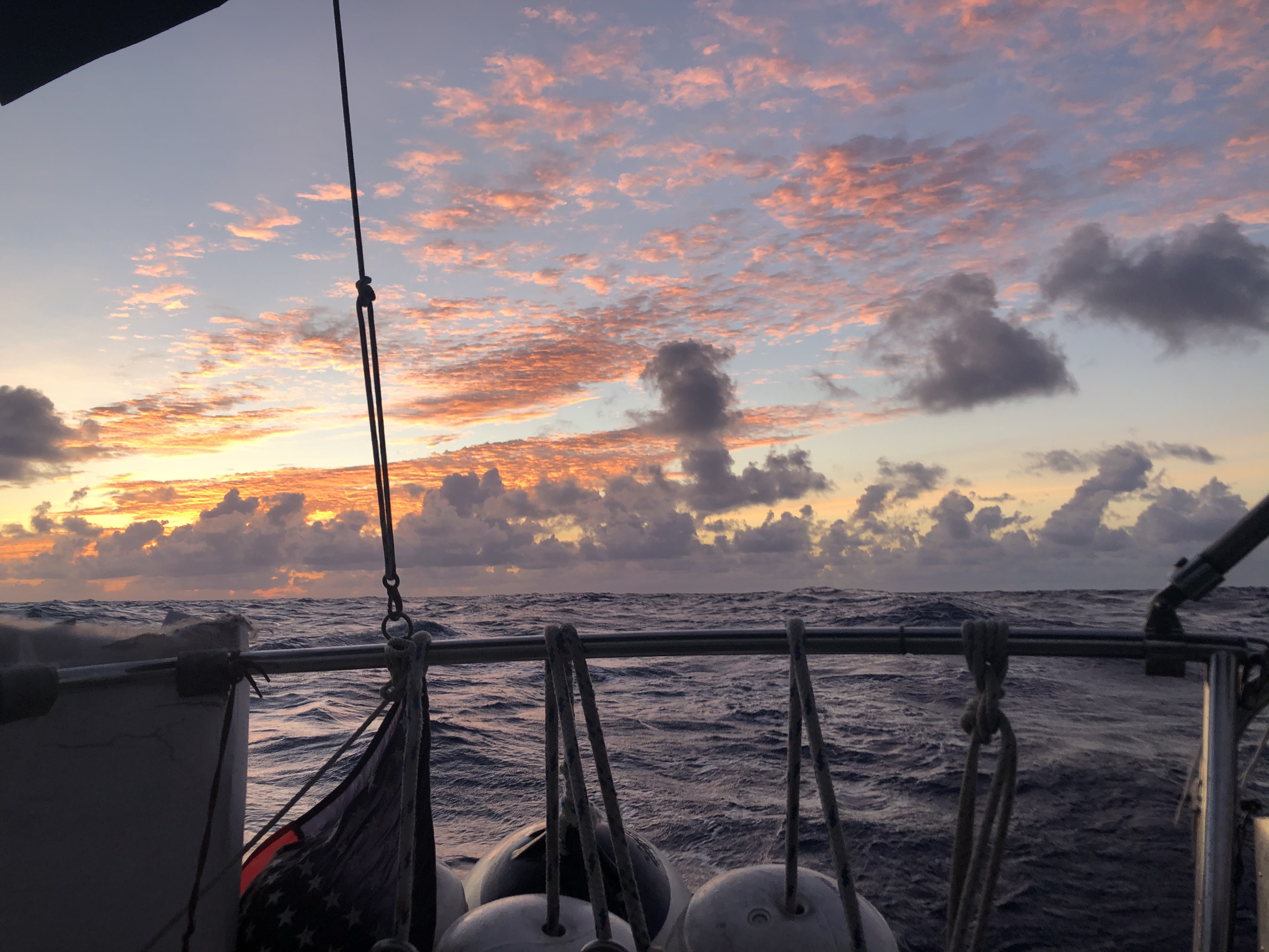 I had originally thought of making a joke about Poseidon forgetting that we were out here for the last three weeks and deciding to hit us with several days worth of heavy wind and seas while we were still in his domain, but I didn’t think the joke was that funny. We had a reminder of the power of the ocean on Saturday, when Bermuda Radio reach out to us to help them get in contact with a singlehanded 32’ boat named GINNY. She was last seen that morning drifting north of the reefs Max mentioned in his previous message. We made hourly calls over VHF attempting to reach her through the night, but before long we had passed too far north of both the range of Bermuda Radio and GINNY’S likely coordinates. We hope the best for the captain.